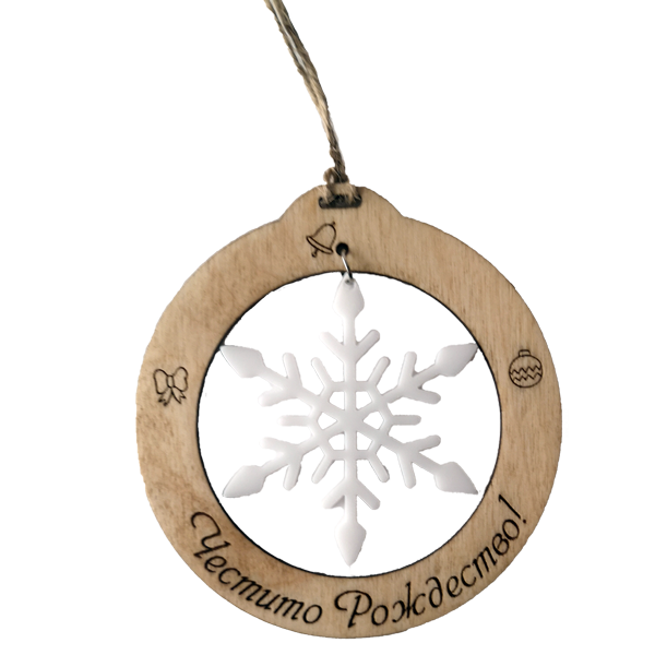 Тази коледна играчка съчетава топлината на дървото и елегантността на плексигласа, добавяйки стил и индивидуалност към вашата празнична декорация.