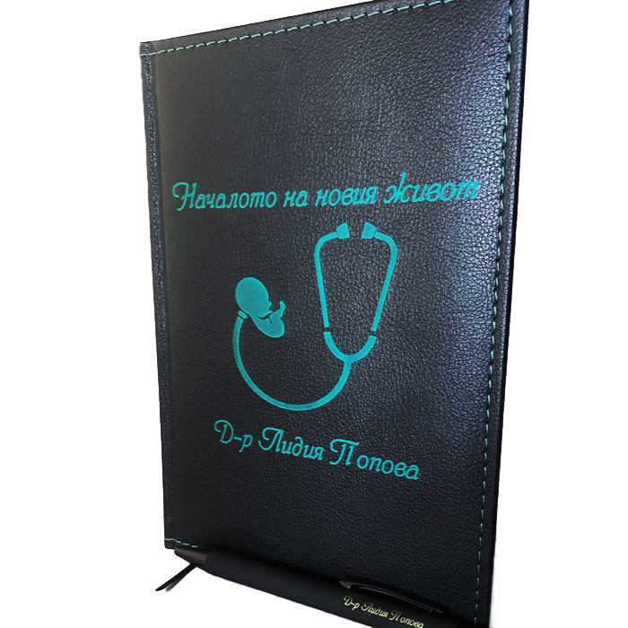 Покажете уважение и признателност към акушер-гинеколог с нашия кожен тефтер за лекар акушер с персонализирано име. Този елегантен и практичен тефтер е перфектен подарък за медицински професионалисти, който съчетава стил и функционалност.
