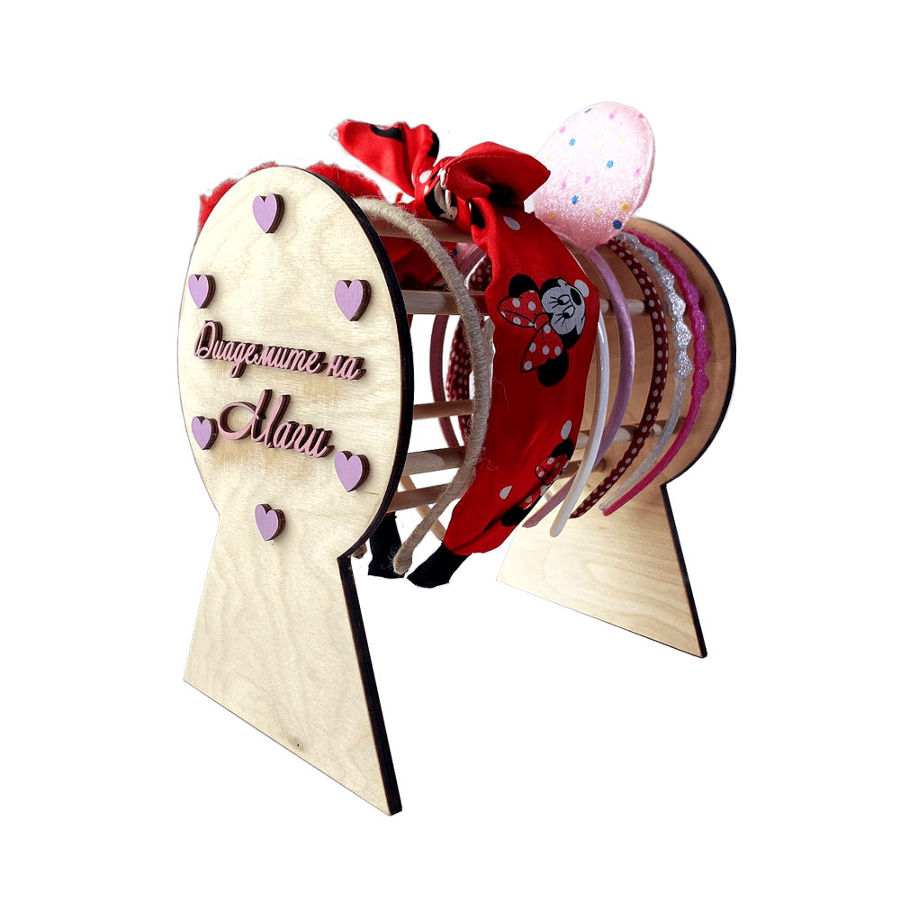 Организирайте и изложете диадемите си със стил с нашата поставка за диадеми с панделка и име. Тази красива и функционална поставка е идеалното решение за съхранение и декорация.