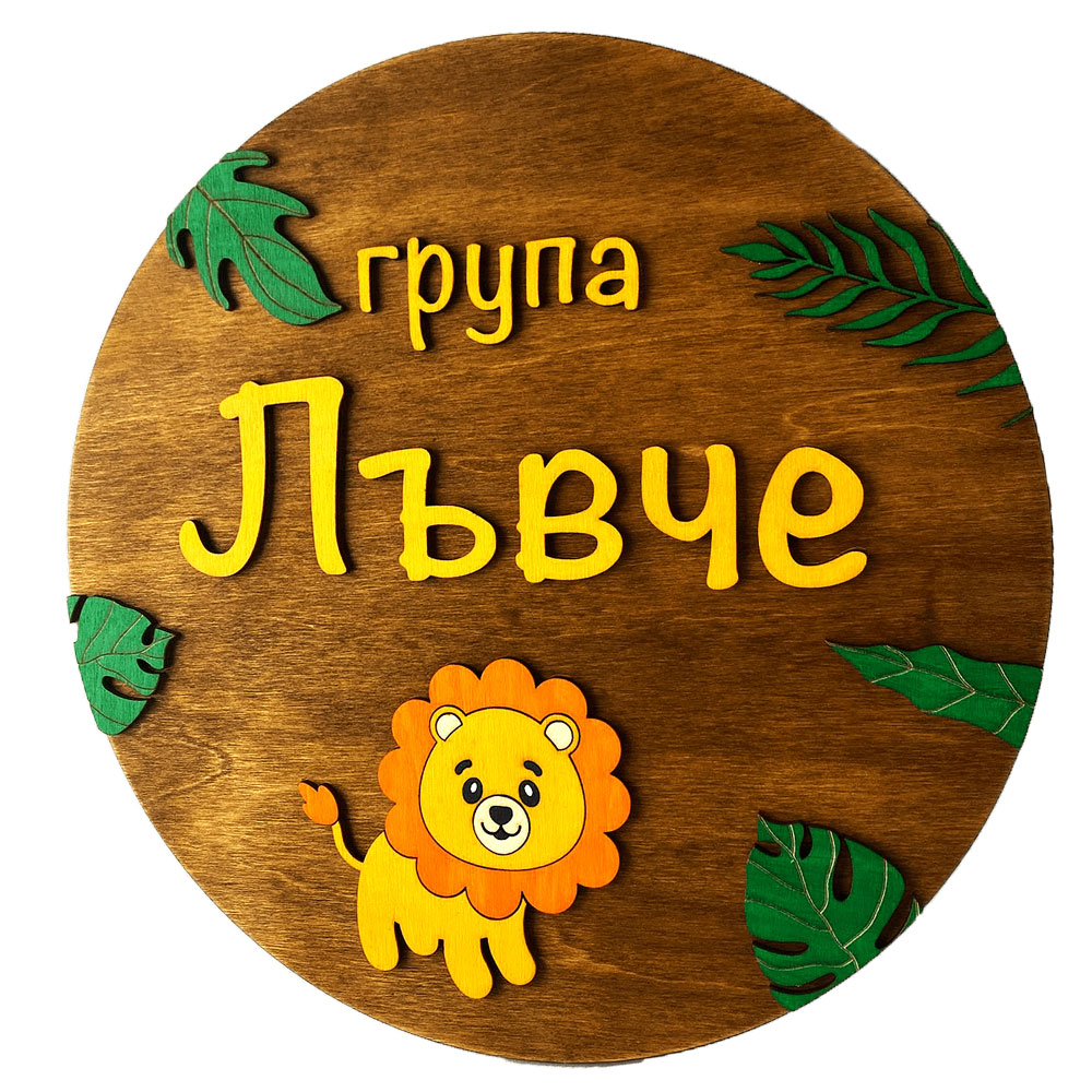Добавете уникален и забавен акцент към детската стая или специално пространство с нашата дървена табела с обемно лъвче и зелени листа. Тази красива и ръчно изработена табела е изработена от висококачествен шперплат и може да бъде персонализирана според вашите желания.