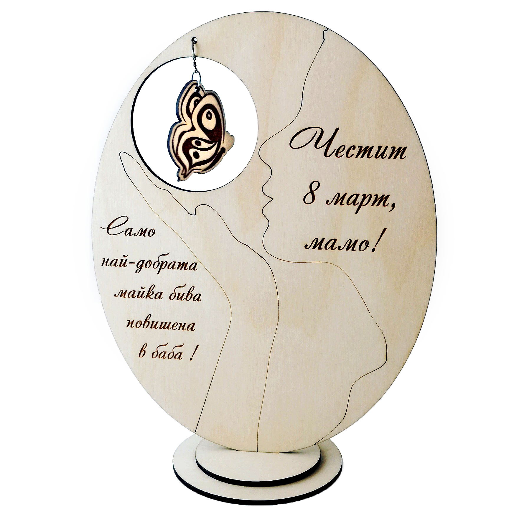 Създайте уникален и елегантен подарък с нашето дървено изделие с въртяща се пеперуда. Това красиво изделие е подходящо за специални поводи или като стилен акцент във вашия дом.
