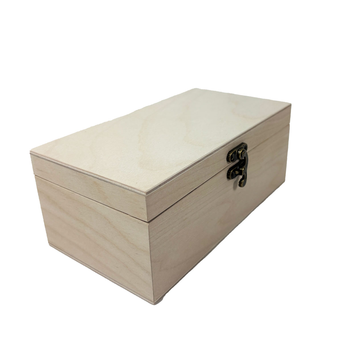 Дървена кутия с размери 200x110x80 мм, изработена от висококачествен шперплат, който гарантира здравина и дълготрайност. Тази универсална кутия е подходяща както за съхранение, така и за декорация или креативни проекти.