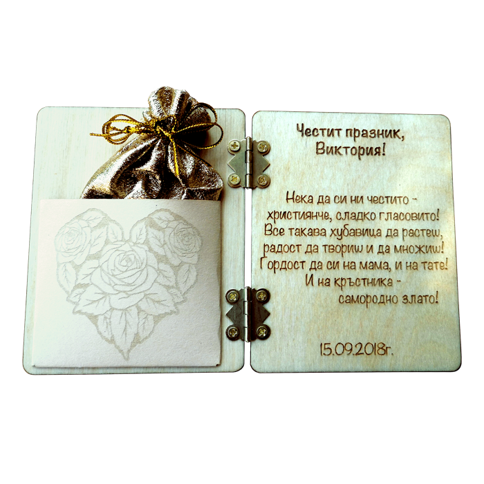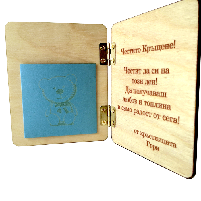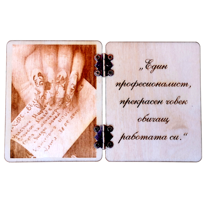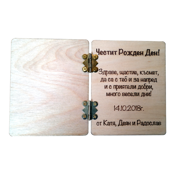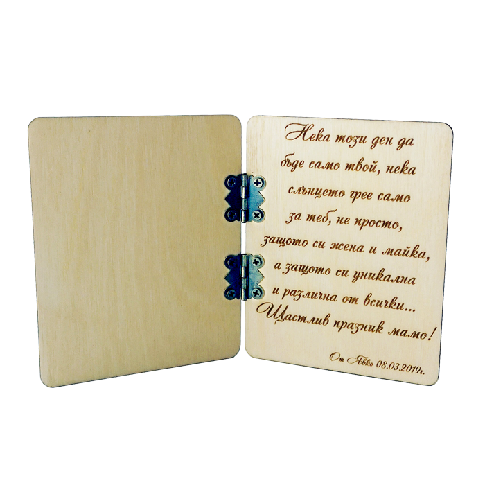 Тази дървена картичка е не само красив, но и траен спомен, който ще бъде оценен от всеки получател.